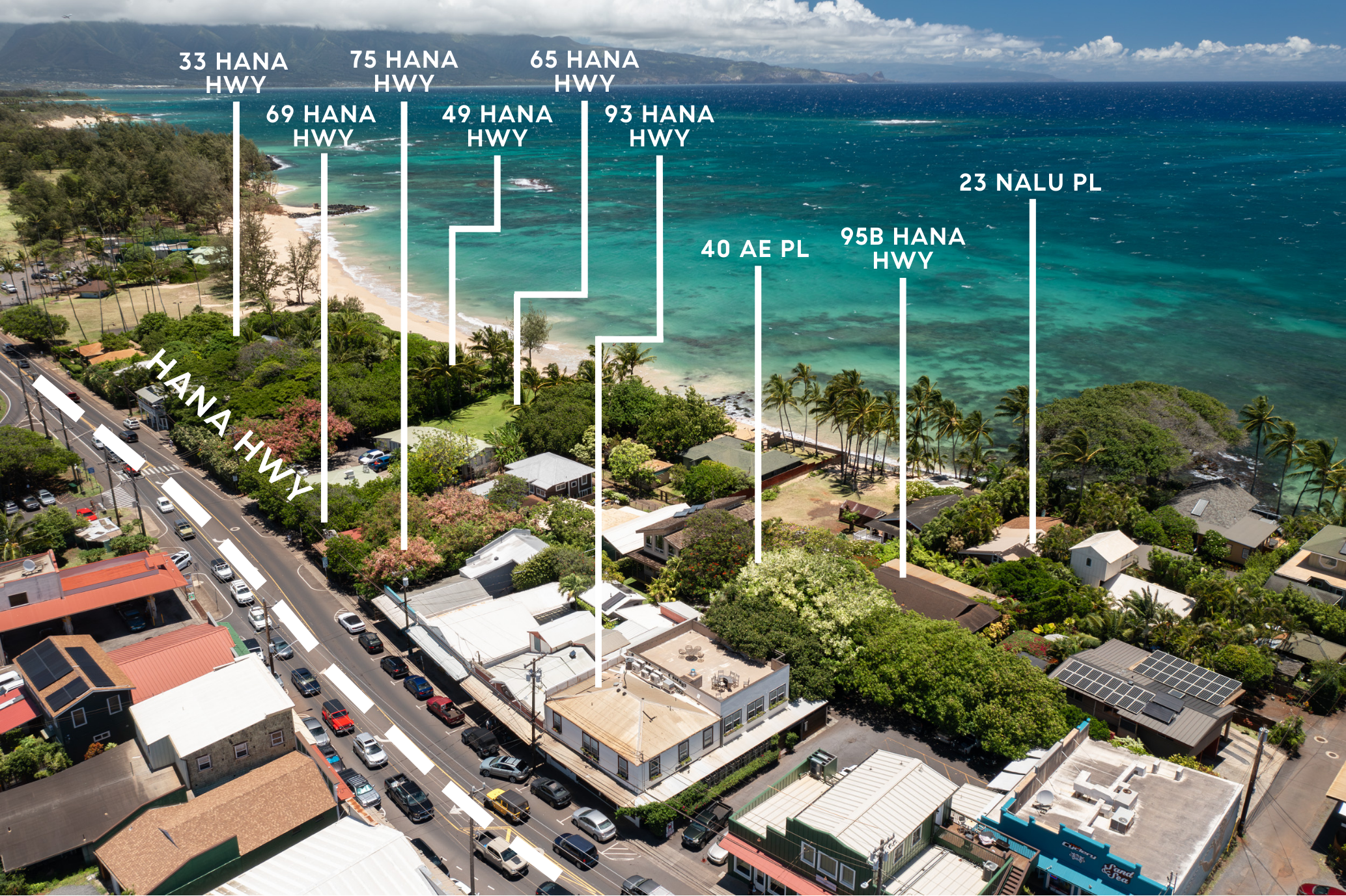 Strategic Location: Centrally located in Paia, Maui’s most vibrant beach town just 10 minutes east of Kahului International Airport. Prominent highway frontage visibility and beachfront access